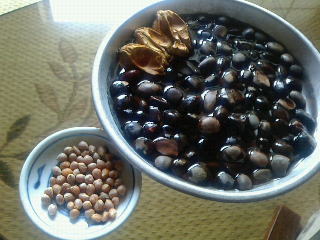 避難勧告や避難指示が出ていたので午前中はおとなしく家にいて、午後から土と『メネデール』を買ってきて懸案の種まき。落ちた実から取り出した米粒ほどのヤマボウシの種60粒と、屋久島でサウスアイランドの奥様千秋さんがお嬢さんのうさぎちゃんと採取して下さったリンゴ椿の種100粒ほどを種まきトレイとポットに播きました。